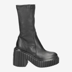 - Sock boot, statement boot, ridged platform sole (front 40 mm) with block heel (100 mm), stretch shaft, breathable
