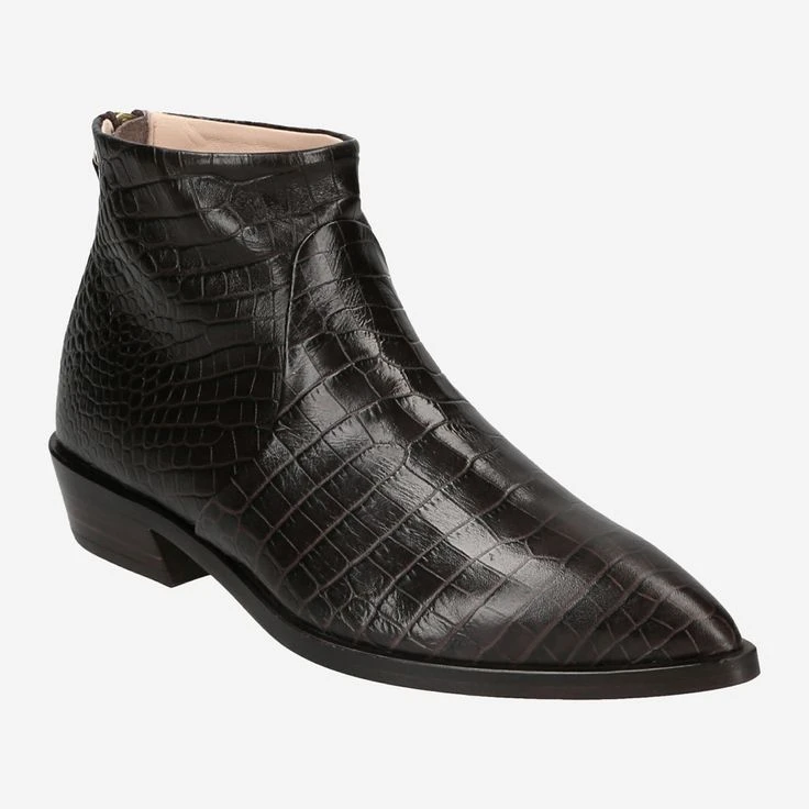 Practicality and sophistication are the Giusti sisters’ guidelines when designing the perfect everyday shoe. This AGL Western-style ankle boot is excellent proof of that. The shoe impresses with first-class brown calfskin in crocodile look and a leather sole with non-slip insert. The 3 cm high heel provides all-day (and night) comfort and the golden zipper at the heel looks extremely elegant.