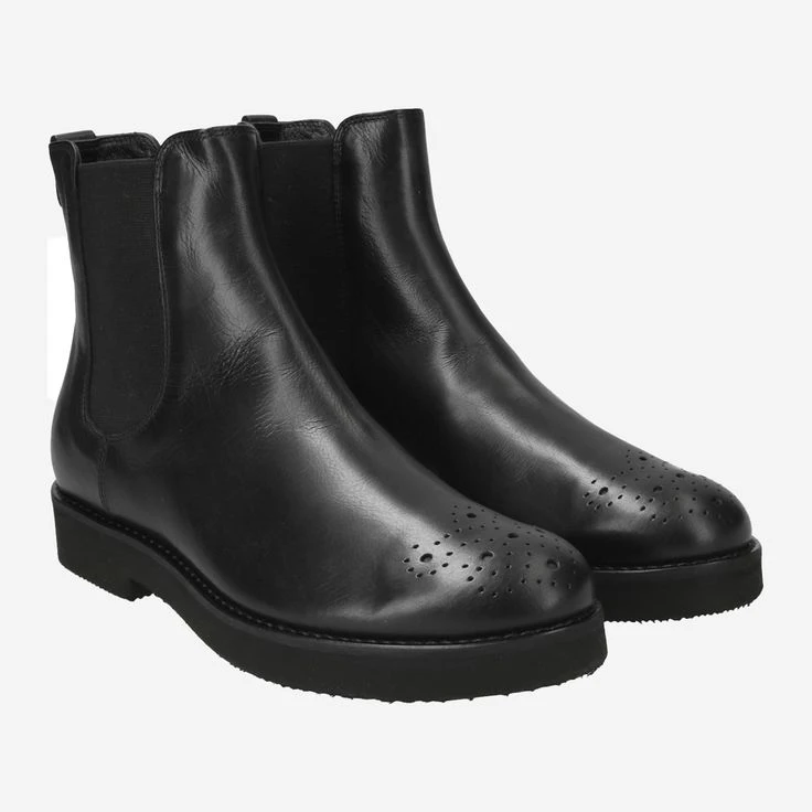 This new, Italian model from AGL will exceed your expectations! The exclusive smooth leather exudes elegance and class, and is refined by hand-cut decorative perforations. This Chelsea boot is very comfortable to wear thanks to the typical stretch inserts on the sides. The finish is created by the logo embossing on the decorative rivet, which enhances the practical entry loop. Here you enjoy precious, Italian craftsmanship!