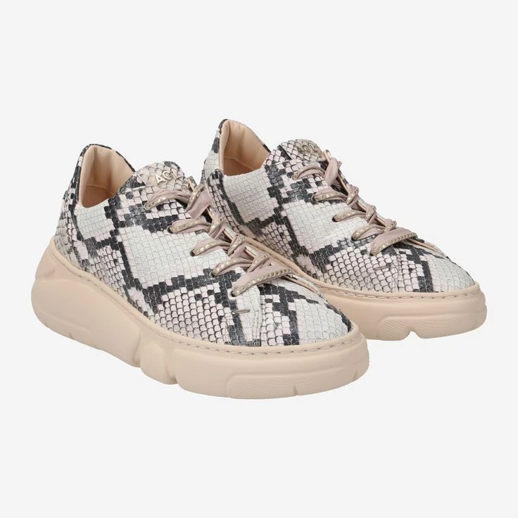 Show all your facets! With SHEILA by AGL you enjoy wild animal look combined with rocky platform and Italian luxury lifestyle! The chunky sneaker trumps with a variety of highlights: The leather is embossed and skillfully imitates an exciting snakeskin look! The double laces round off this cream piece, with matte gold-colored studs giving them an exclusive touch! Definitely SHEILA is a shoe to fall in love with!