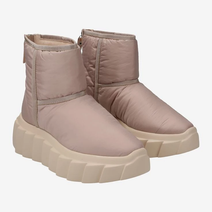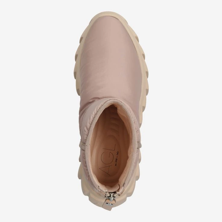 Even in winter you are guaranteed the ultimate look with these Italian high fashion boots! AGL’s futuristic design combines the cult character of the snow boot with the flair of the international catwalks. The model “Blandina” is airy due to the upper material made of rosé nylon – which creates an exciting contrast to the beige platform sole. The brand-typical zipper in the heel area, as well as the logo embossing, set this statement boot noble and glamorous in scene!