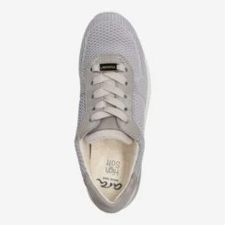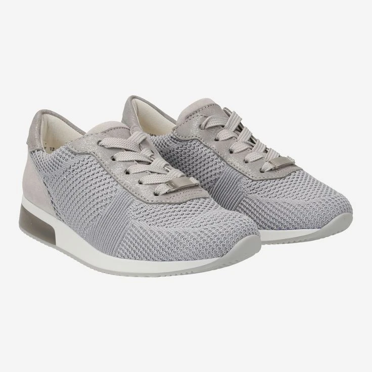 This gray sneaker from ara impresses with its sporty design and latest technologies! Fusion4, the Dynergy outsole and an exchangeable footbed contribute significantly to a special wearing comfort. The heel cap in glitter look is also a brilliant eye-catcher!