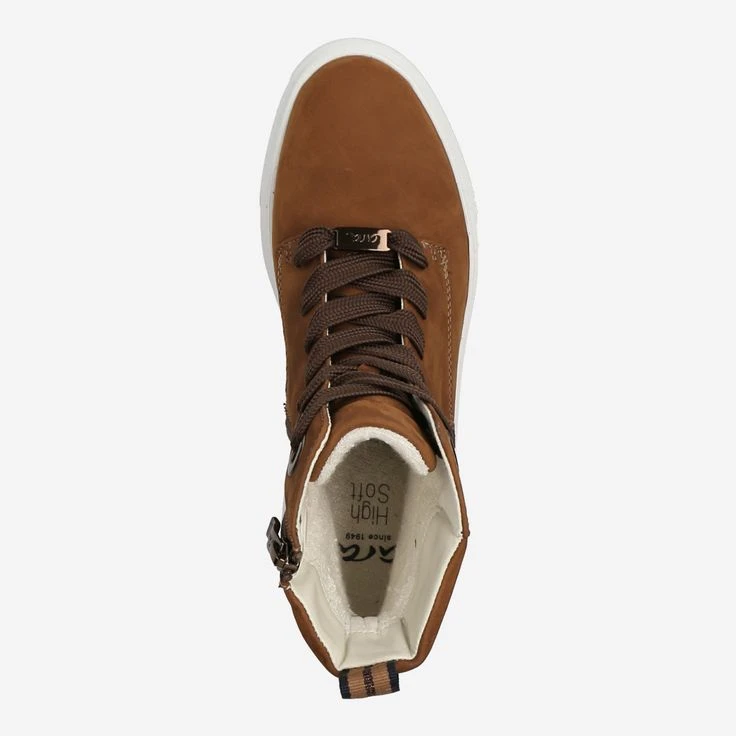 This hightop sneaker from the house of ara is shapely and has a very appealing look. The warm brown of the nubuck leather harmonizes great with the extra light platform sole. The bamboo terry lining is complemented by a soft sole, so you can experience the high comfort of ara all day long!