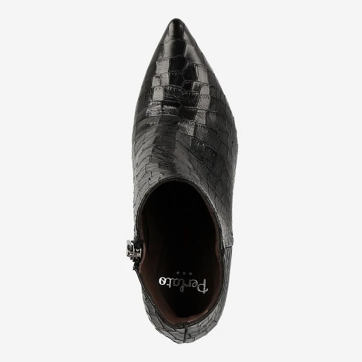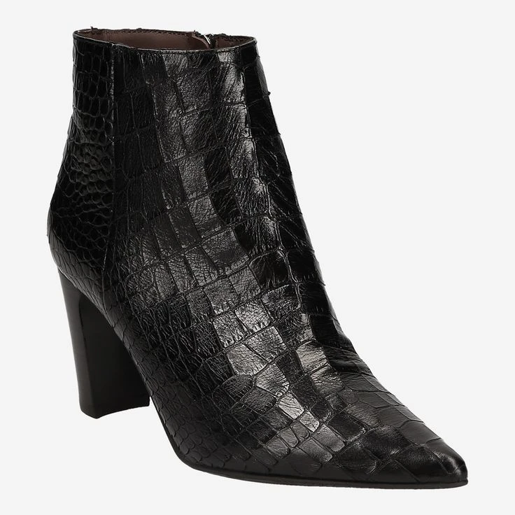 This timeless classic ankle boot must not be missing in any shoe collection this fall! Made of black leather with reptile look and equipped with a practical zipper on the inside, this model can be combined with numerous outfits. The modern look makes it a real it-piece this fall. Whether casual with jeans or chic with your business outfit, with this shoe you are always stylish.
