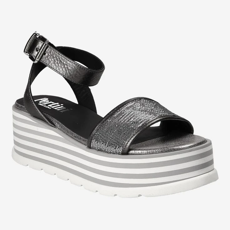 Wow! What a skillful and yet daring shoe! The glittering stones on the front foot strap shine you into the center of any conversation. The metal clasp gives you flexibility and the chic platform sole still makes the finishing touches out- a wonderful shoe to enjoy the summer with its colors, because: this shoe you can easily combine with everything.
