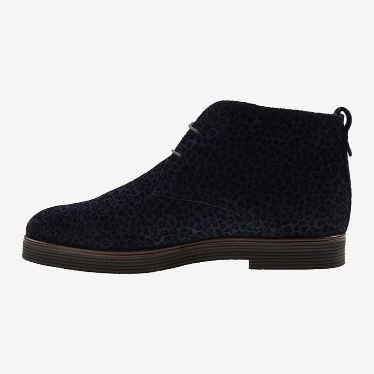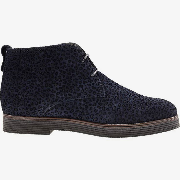 These lightweight lace-up boots from Italian brand Maripé focus on high comfort paired with fashionable appeal. The upper is made of dark blue suede leather, which has a leopard-print texture. A comfortable wearing sensation is also ensured by the pleasant leather lining as well as the leather cover sole. The flat heel and lightweight rubber sole provide plenty of stability.