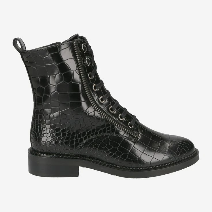 Are you passionate about fashion, like to combine different styles and put together new outfits? Then you should get sparkling eyes here: This boot made of embossed black leather shows you a new interpretation of the popular animal style. The reptile look is complemented by decorative zipper elements to create an even more individual look. Of course, this shoe from Pertini also has a real zipper to slip in quickly and easily. Stylish and practical, here just fits everything!