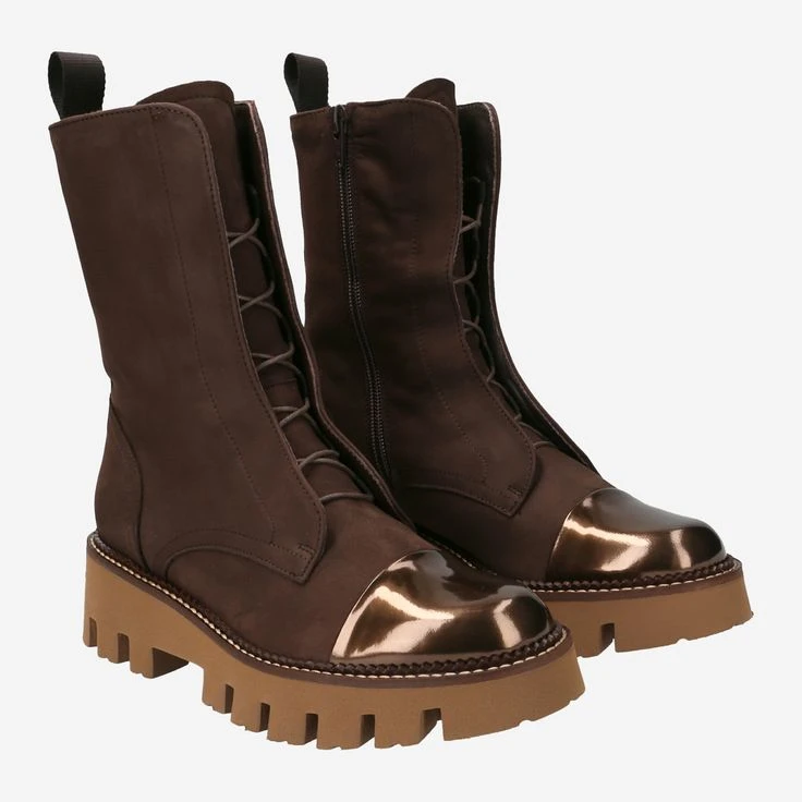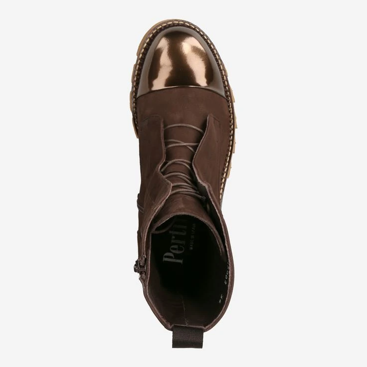 Fancy a style upgrade? Well then go ahead – this brown ankle boot convinces with the internal lacing, rocky design and a matallized toe cap made of patent leather. The Pertini brand embodies the unique lifestyle of a shoe manufacturer from Spain. Their handmade shoes combine traditional craftsmanship with modern design, making them a must-have for all fashion enthusiasts. The attention to detail and meticulous workmanship make each shoe a work of art that underlines the personality of its wearer.