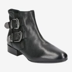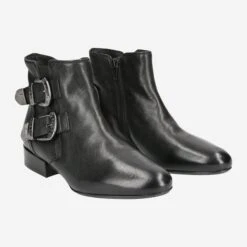 This fall we walk around with a rock attitude. This shows up in the form of ankle boots, ankle boots from Donna Carolina of course. This model impresses with high-quality smooth leather in timeless black and two silver-colored clasps with a wonderful floral embossing. Treat yourself to an expressive appearance with these great ankle boots.