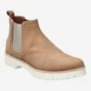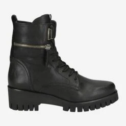 - Platform sole, entry loops, zipper, decorative closure, leather application, metal applications, profile sole