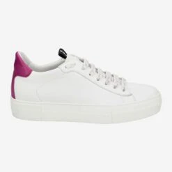The white cult sneaker goes into the next round! This exclusive Italian-made sneaker rounds off your casual style luxuriously! Donna Carolina processed in this model white smooth leather, which is complemented by a platform sole. The design scores with casual accents, such as a magenta heel cap with logo embossing, as well as a stylish entry loop. The laces in a marbled vintage design serve as an eye-catcher that will earn you some compliments!