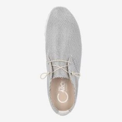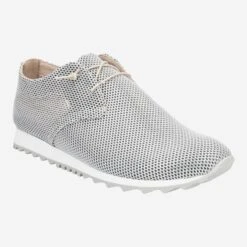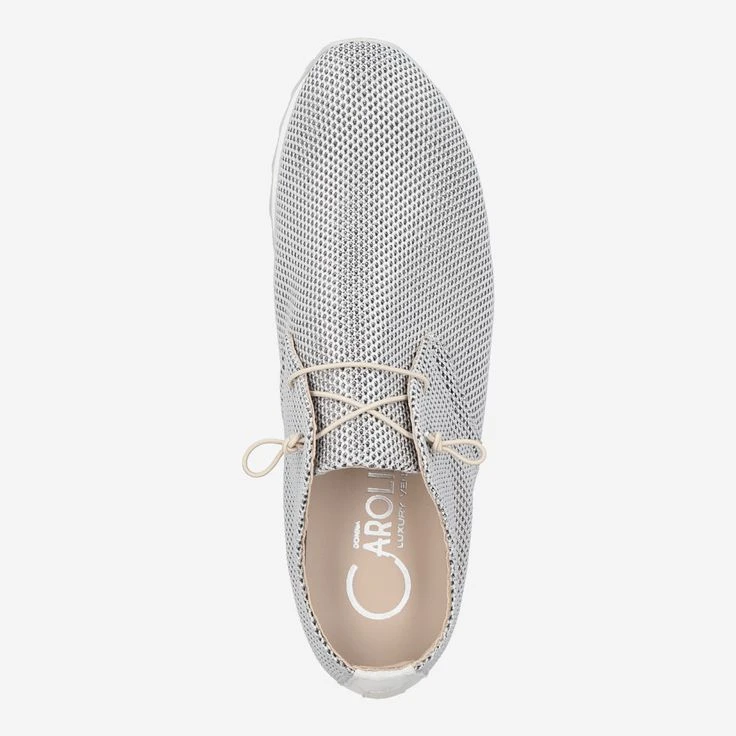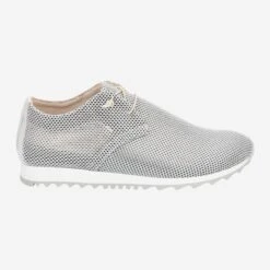 This comfortable casual shoe from Donna Carolina offers you a pleasant wearing feeling. The flexible upper made of loose textile adapts to your foot individually. The airy structure guarantees you a pleasant foot climate. A special detail lies in the brand-typical rubber lacing, which makes this silver-shimmering model recognizable for all fashion fans as an Italian classic! The gray and white harmoniously rounds off the sporty look.