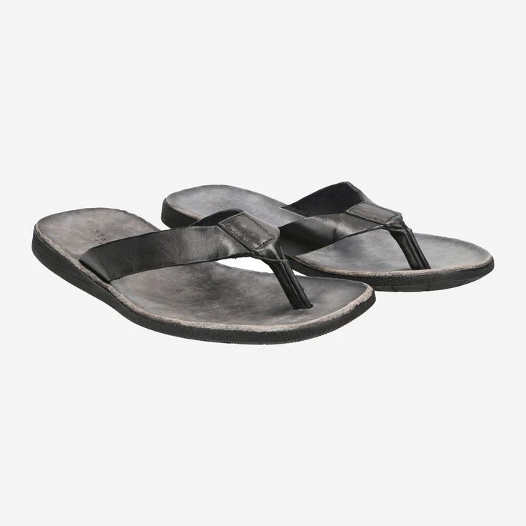 Summer at last! For plenty of air on your feet and a light, comfortable feel provide these flip-flops made of black leather. The trendy vintage look makes the shoes appear in a used look with supposed traces of use. Both the cover sole and the inner lining of the shoes are made of supple leather and promise maximum comfort. The flexible rubber sole also promises a high degree of stability. Thus, the walk on the beach and the city stroll becomes a great pleasure.