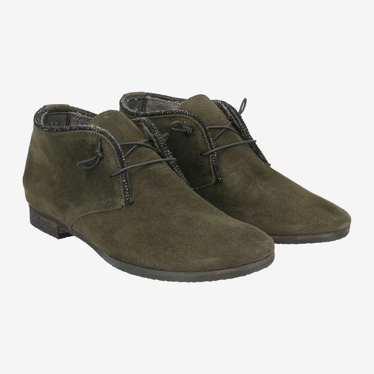 Look forward to these Italian lace-up shoes with cozy lining! In brand-typical design, this model inspires with green suede, a removable insole made of leather, as well as a slightly warming lining made of easy-care plush (100% polyester). The decorative quick lacing system lets you slip in easily and quickly. The hem area is refined by a decorative piping with glitter stones, which – depending on the incidence of light – sparkle enchantingly. This is where Italian craftsmanship meets great comfort – with a delicate touch of glamour!