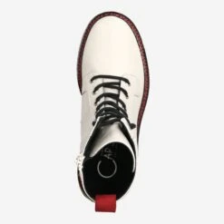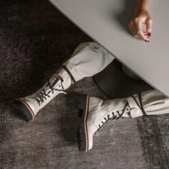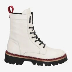 With these Italian statement boots you draw the eye! Donna Carolina combines here the colors white, red and black to a fashion must-have of a special kind! The design is based on the popular worker boot, and defined by noble details. The white smooth leather defines a fabulously noble and impressive contrast to the black sole, as well as the red decorative stitching! With this YOU set the trends!
