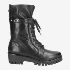 Donna Carolina presents you with this rocking biker boot a model that comes up with many highlights: Lacing, soft cuff, stud applications and a really ingenious, double zipper at the back. This makes it very easy to get into the boot. The black platform provides stability and underlines the look very cool. This boot rocks!