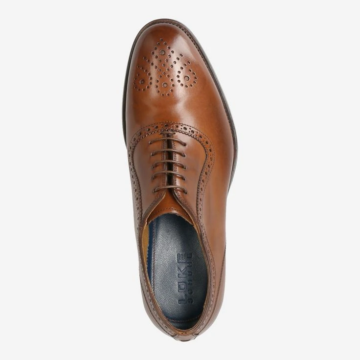 With this lace-up shoe you get high quality from traditional craftsmanship. The brown smooth leather is refined by punched Lyra perforations and a playful decorative perforation high quality. The traditional house Lüke manufactures this business shoe with a welted sole to give you a long-lasting wearing experience.