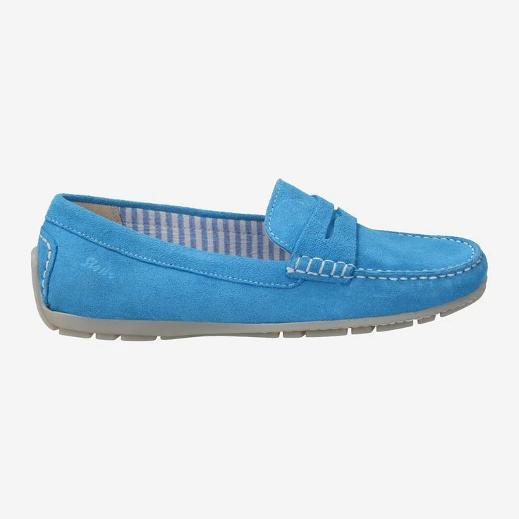 - Exchangeable footbed, suitable for insoles, sewn-through sole, contrast stitching, logo embossing, driver’s sole, MOKASSIN style (hand-sewn), super soft footbed, loafer application