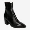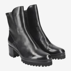 In the style of classic Chelsea boots present these exclusive ankle boots from Trumans, which are made of soft black smooth leather. While the cover sole is made entirely of leather, the lining is half made of textile. A practical zipper ensures easy entry, furthermore, the stretch insert in the approximately 19 cm high and regular 24 cm wide shaft ensures an optimal fit. The rubber-leather sole with its 45 mm high block heel also promises maximum stability.