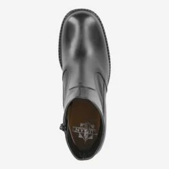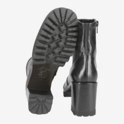 - Zipper closure, block heel, adaptable sock boot style upper, wavy placket, breathable.