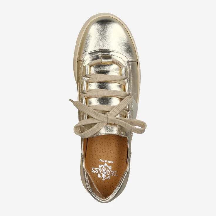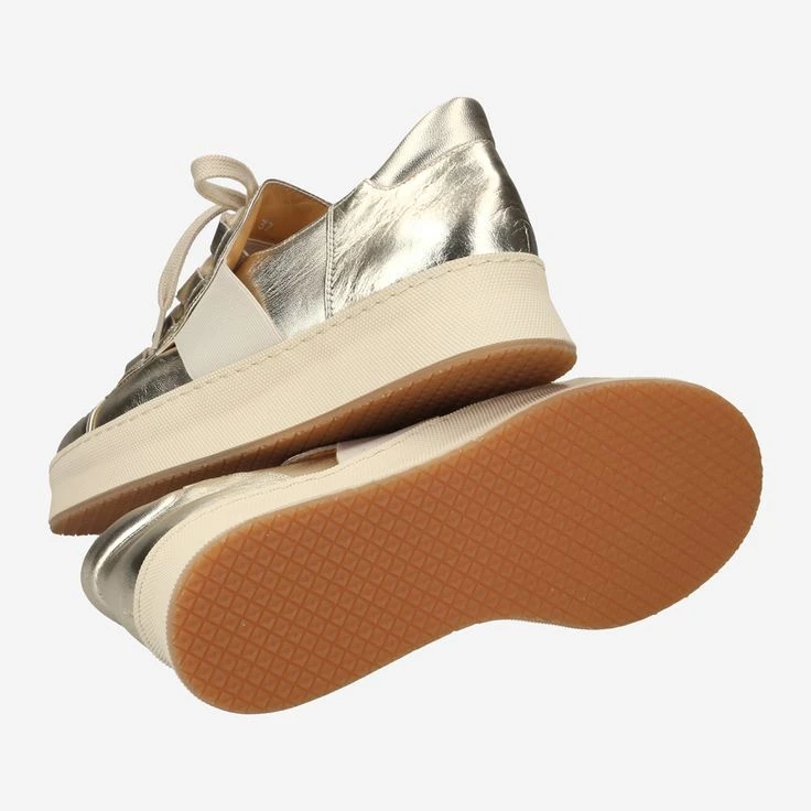 - Exchangeable footbed, suitable for insoles, platform sole, sewn-on sole, padded heel strap, decorative lacing with side elastic bands (stretch), noble look in gold metallic, made in Italy, each piece is unique, breathable