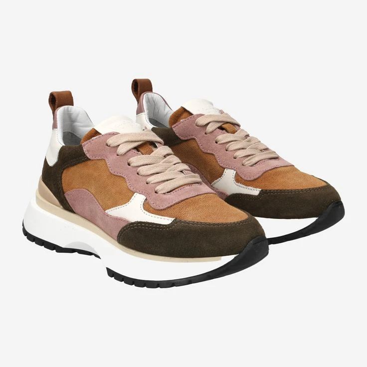 The ADELAINE casual shoe from Maripé is sporty and dynamic. The mix of green and brown tones looks particularly vivid against the white trend sole with a slight platform.