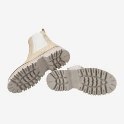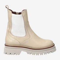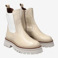 Snowy white, creamy beige and strong espresso brown unite them in this statement boot BEATRICE to a festival of highlight! Italian manufacturer Maripé enchantingly expresses its attention to detail. The bright white stretch insert is framed all around by white decorative stitching. A play of contrasts – simply great and a very special cream piece of the new collection!