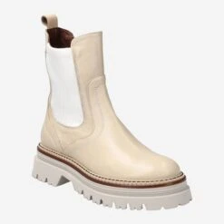 Snowy white, creamy beige and strong espresso brown unite them in this statement boot BEATRICE to a festival of highlight! Italian manufacturer Maripé enchantingly expresses its attention to detail. The bright white stretch insert is framed all around by white decorative stitching. A play of contrasts – simply great and a very special cream piece of the new collection!
