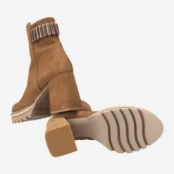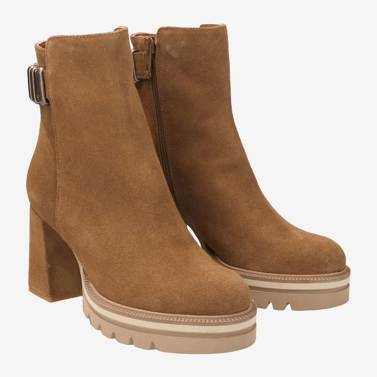 Treat yourself to a fashion highlight with Italian flair! Exclusively in Italy Maripé manufactures beautiful shoes for demanding fashionistas! BELINDA is an extraordinary ankle boot: it is made of cognac-colored suede and captivates with its refined design. A strap with metal applications dresses the heel area. The cream contrast trim brightens up the ankle boot and offers a refined height balance to the wide block heel.