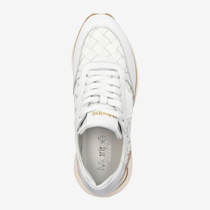 Bring Italian flair and summery lightness in her outfit! This noble luxury sneaker from Maripé combines the sporty, fresh character of the cult sneaker with noble, white smooth leather. The braided structure of “Candice” creates an exciting, three-dimensional look, and serves as a stylish highlight for your exciting new look!