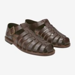 Brown sandals from Fratelli Vanni, the upper is made of smooth leather. A brass-colored metal closure facilitates the entry. Inside the shoe is equipped with leather lining, the leather sole provides a good wearing comfort.