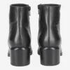 - Block heel, platform sole, contrast stitching, entry loop, zipper, breathable, stretch inset