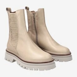 Especially monochrome looks look classy and expressive with the ankle boot DESIDERIA! Maripé manufactures in Italian style and exquisite quality. The coated, beige smooth leather is complemented by a wide stretch area. About the practical zipper you manage the entrance quite simply. And it is also easy to compose great looks with it: Whether white, cream, gold or with natural tones – these statement boots complement your style in a high-quality and casual way at the same time!