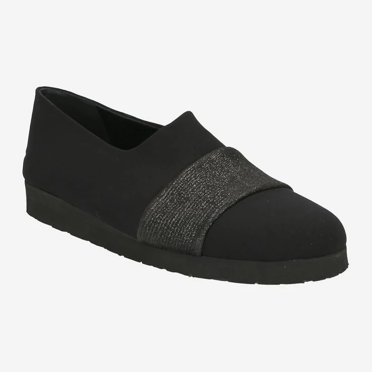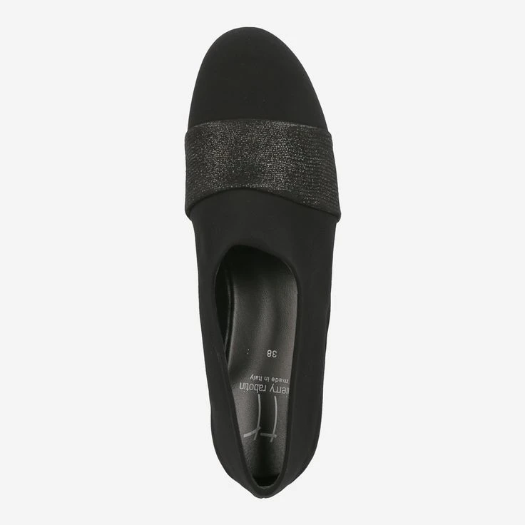 Light as a feather and with an elegant design, Thierry Rabotin presents this black loafer. The look is characterized by a textile band of discreetly glittering stripes. The inner lining impresses with its cuddly leather. “Graziella” is an elegant and convincing summer shoe for all shoe lovers!