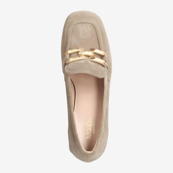 - Block heel, jewelry application, loafer application, decorative stitching, breathable