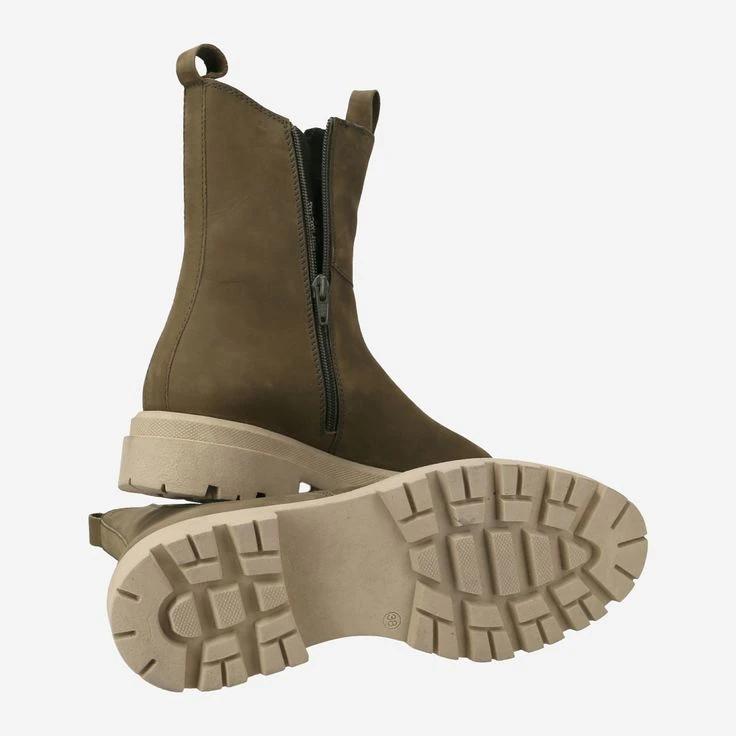 - Exchangeable footbed, suitable for insoles, zipper, block heel, logo embossing, entry loop, decorative stitching, stretch inset