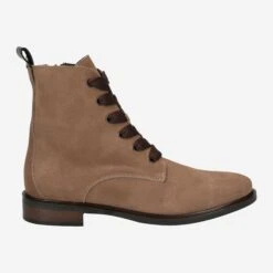 A classic ankle boot is a must-have in autumn. It can be combined in many ways with pants, skirts or dresses and reliably protects the foot up to the lower calf. The beige model by Lüke scores with a wide patent leather entry loop and a side zipper, for a relaxed entry and exit. The soft suede brings a warm look, which is emphasized by the dark laces, the loop and the sole.