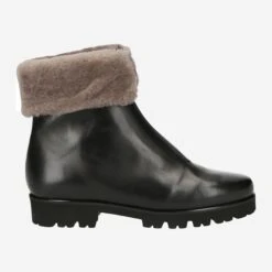 Black ladies ankle boots from Gritti made of fine-grained leather. The approx. 15 cm high shaft is lined with warm lining (100% lambskin). A zipper facilitates entry and the approx. 30 mm high block heel ensures good wearing comfort. A profiled rubber sole guarantees a secure step.