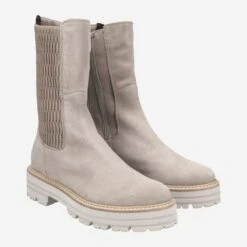 Maripé manufactures unique and innovative luxury models in the traditional Italian way, which are celebrated on international catwalks! This statement boot “Terni” inspires with its bright platform sole, the soft beige suede, as well as noble details that define the look. The practical zipper is complemented by a really casual, decorative stretch insert. Here you enjoy a fashion highlight that convinces with comfort, quality and genuine craftsmanship!