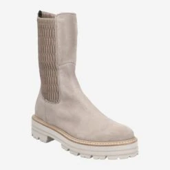 Maripé manufactures unique and innovative luxury models in the traditional Italian way, which are celebrated on international catwalks! This statement boot “Terni” inspires with its bright platform sole, the soft beige suede, as well as noble details that define the look. The practical zipper is complemented by a really casual, decorative stretch insert. Here you enjoy a fashion highlight that convinces with comfort, quality and genuine craftsmanship!