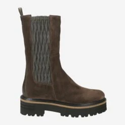 Are you looking for something special? With this expressive statement boot from Maripé you enjoy exclusive design, handmade quality and finest, dark green suede! “Urbino Var.1” inspires with platform, a bright contrast strip, and a really casual stretch insert!