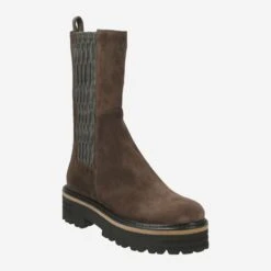 Are you looking for something special? With this expressive statement boot from Maripé you enjoy exclusive design, handmade quality and finest, dark green suede! “Urbino Var.1” inspires with platform, a bright contrast strip, and a really casual stretch insert!