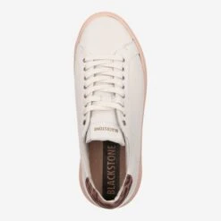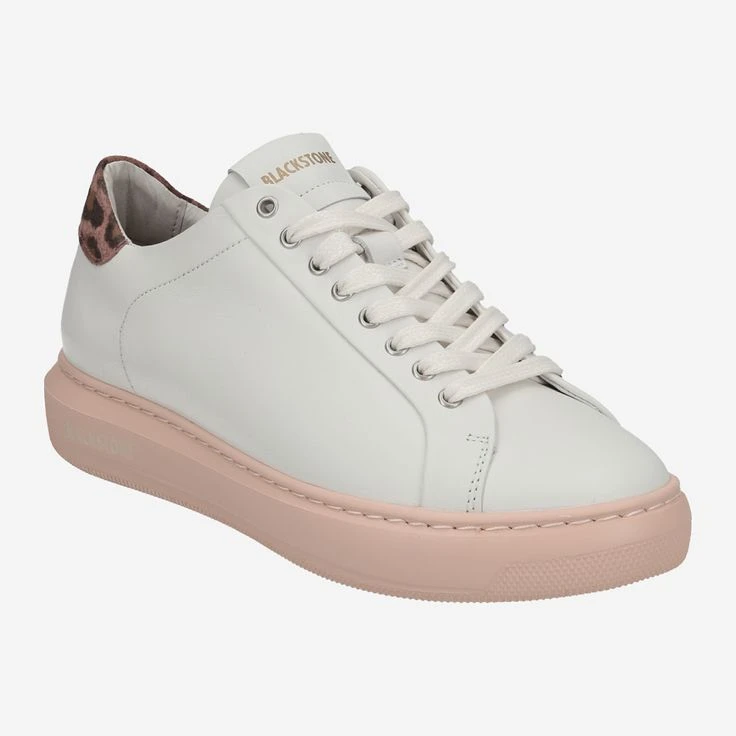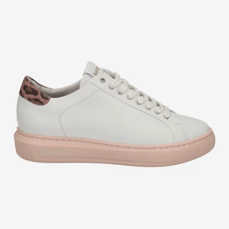 Simple elegance and fashionable details – this is how Blackstone shows the new collection of their white sneakers. With the color-contrasting sole in modern salmon red and the discreet leather application with leo print in the heel area, Blackstone proves its affinity for trends. In addition, the high-quality leather offers you impeccable wearing comfort.