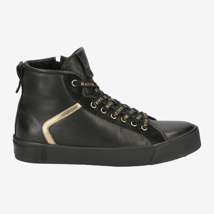 Who would have thought that the manufacture Blackstone creates such a stylish winter boot? This casual model scores purely visually with the luxurious interplay of the black smooth leather with the gold-colored details. The high sneaker shape makes it look sporty and dynamic. The highlight here is well hidden: the inner lining made of soft, warm sheepskin. This guarantees you a cool look and warm feet!