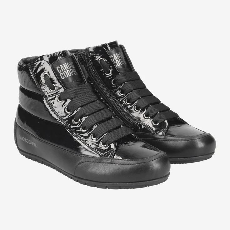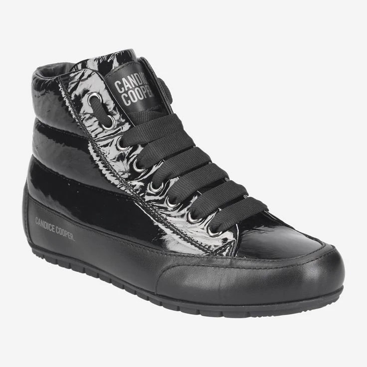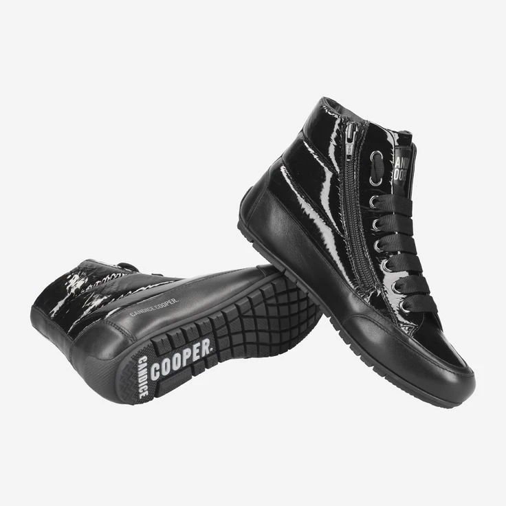 Fashionistas take note! Hightop sneakers have a long history in streetwear culture and have been a symbol of freedom and individuality for decades. The design with the high shaft covers – compared to the sneaker – the ankle and thus looks maximally casual and sporty at the same time. Combine this cult model PLUS PUMP CHIC with other streetwear garments such as baggy jeans, hoodies and snapback caps to create a casual and trendy look. A classic from Candice Cooper in black patent leather that is ideal to street look