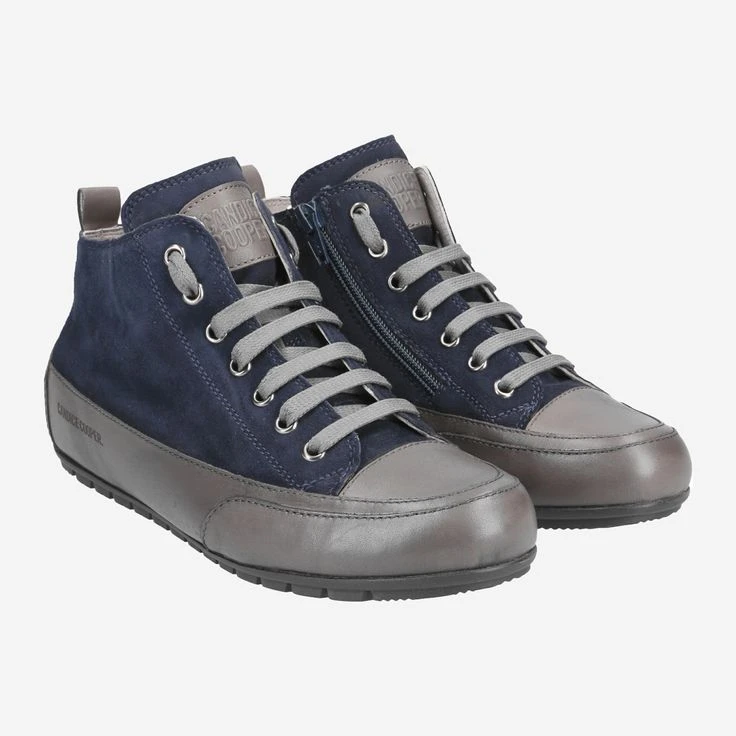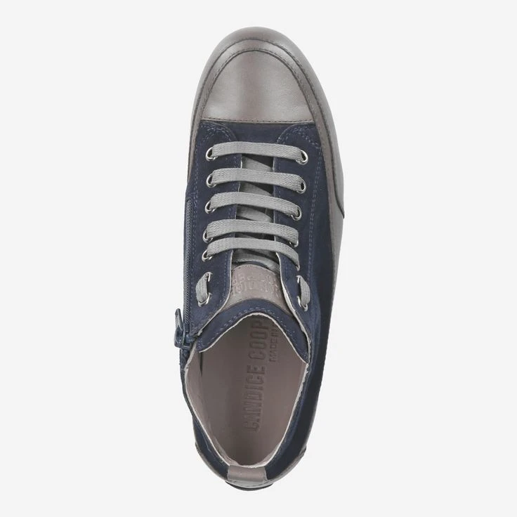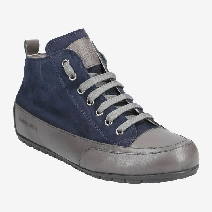 Enjoy casual street style, Italian craftsmanship, and the signature look of Candice Cooper! The cult sneakers go into the next round, and inspire young and old! This model “Mid Antracite” is in medium-high design ideal for any season. The metallic gray smooth leather is complemented by dark blue suede, and refined by brand-typical details. Pure fashion – see for yourself!