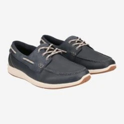 This sporty interpretation of a boat shoe inspires at first sight! Clarks lets the iconic boat lacing run out in a three-hole lacing, and thereby skillfully builds a bridge to the casual leisure shoe. Bright contrast stitching and the bright sole round off the look youthful.