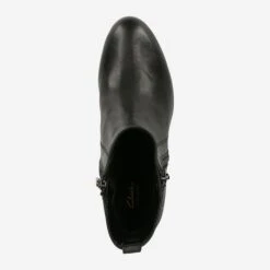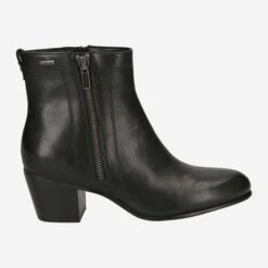 These timeless, elegant ladies ankle boots made of premium smooth leather in black fit any occasion. The GORE-TEX® technology ensures pleasantly dry feet and makes these boots the perfect companion even in rainy weather. The side zipper provides an elegant look and is practical at the same time. In addition, an inner stretch insert behind the zipper provides protection. The medium-high block heel of 55 mm makes for great long legs. The 14 cm shaft height is the perfect height for many looks. With the “Ceara Emi” model from Clarks you will enjoy elegant, classic and practical ankle boots.