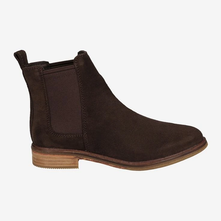Clarks presents the ClarkdaleLoHot, another classic in the series of Chelsea boots. The typical stretch inserts and the pull tab at the heel make it much easier to get into the model and at the same time ensure an optimal fit. The premium suede in brown is a great match for the coming, autumnal days and can be easily combined with a wide range of colors. The discreet heel gives the shoe its elegant touch and the slip-resistant rubber sole provides better traction. The inner lining as well as the cover sole were made of cozy warm lining and guarantee best wearing comfort.