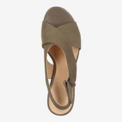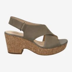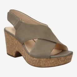 Discover this iconic light green platform sandal from Clarks! The cork-covered sole harmonizes ideally with the cuddly nubuck leather. The insole is made of soft leather and comfortably cushions your foot. The closure is practical via the adjustable Velcro strap on the ankle. With “Maritsa Lara” the summer can come!